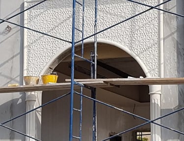 This grand villa project features a stunning classical façade finished with premium concrete artificial stone. Detailed arched windows, elegant column structures, and aluminum framing highlight the architectural excellence. United Group supplied the full exterior cladding and structural framing components, delivering timeless beauty with long-lasting durability.